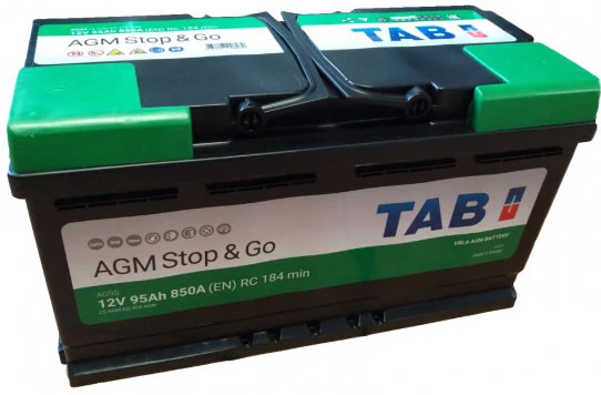 A TAB AGM Stop&Go akkumulátorok szelepszabályozott ólom-savas (VRLA) akkumulátorok, amelyeket Start/Stop funkcióval és fékezési energia-visszanyeréssel rendelkező járművekben való használatra terveztek. Az akkumulátorcellákat nyomáscsökkentő szelep zárja le, az elektrolit pedig üvegszálas gyapottal (AGM = absorbed glass mat) van felitatva.